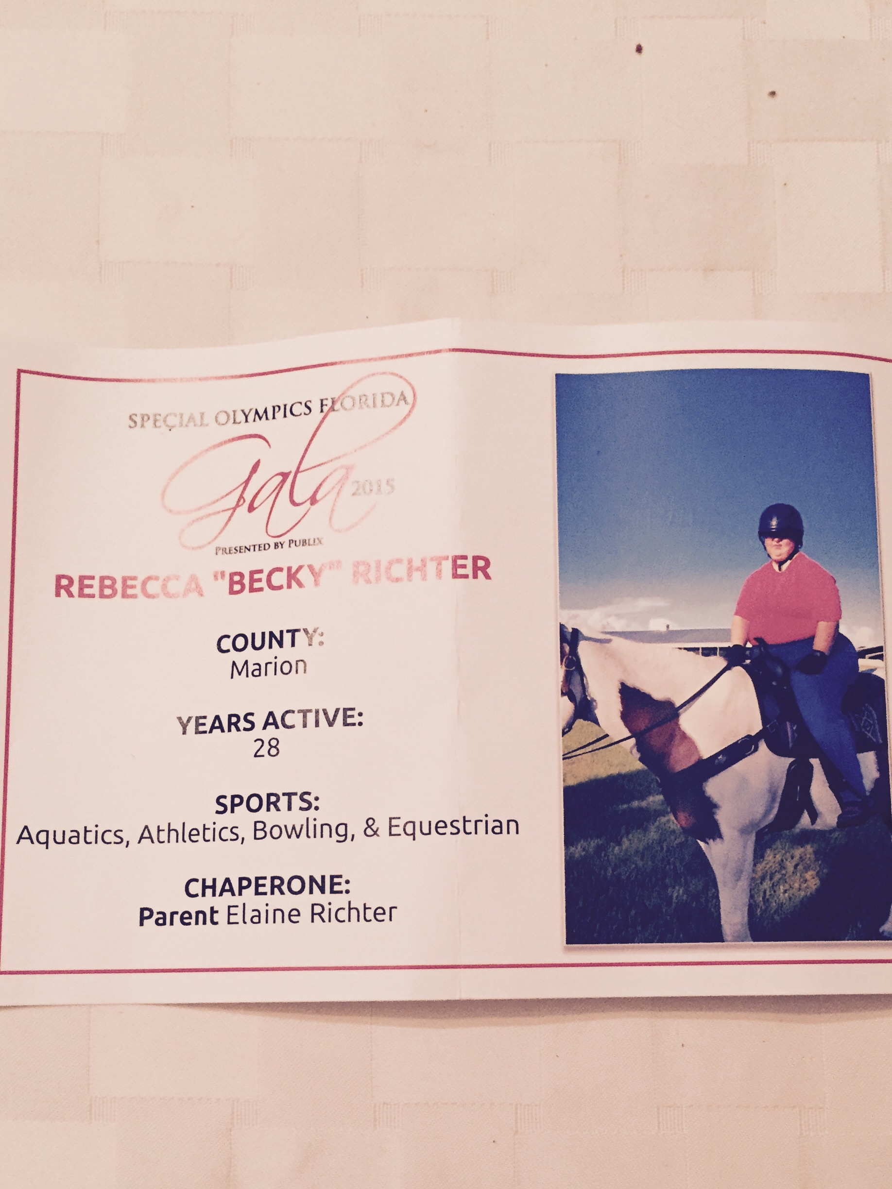 But all these aches and pains that seem like such cause for concern simply take on a whole new light when you think about those involved in Special Olympics. We sat at a table last night with Central Florida’s Special Olympics’ equestrienne of the year. She’s 36 years old, has two older sisters, and attended with her mother. She’s got Downs’ syndrome. She’s also been a coach and inspiration to others in Special Olympics. The history of Special Olympics – created by Eunice Kennedy Shriver – and in honor of her sister Rosemary Kennedy – should remind us all of those who suffer from intellectual disabilities and how we can help.