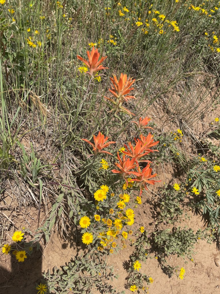 Our first full day there we went off for a short stroll that turned into a six mile uphill rocky hike. Despite the fact we were woefully unprepared in terms of water supplies, and daughter S extremely jet lagged, the beautiful wildflowers everywhere made up for the lack of hydration. Orange Indian paintbrish, yarrow, pink wild roses, pink geraniums. The only part I didn’t like was tromping through the burr ridden sheep grass to reach the trail. Weeks later I was still picking small harpoons out of my socks.