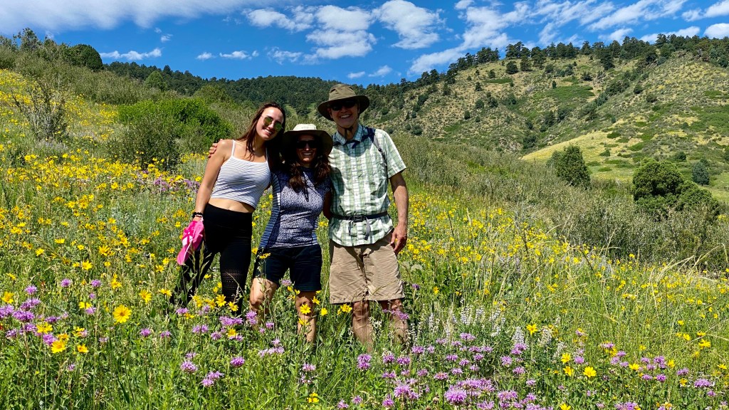 But to return to Colorado. We managed to survive our night at the Stanley Hotel without any ghostly encounters, bid a fond farewell to M and S, and headed off the next day to meet up with daughter A and fiance N, and daughter S, at the Golden home of old friends D & D. That doesn’t stand for dungeons and dragons. But the place they live certainly has a netherworld quality to it. Their house is located on a large expanse once owned by a Colorado beer magnate and is surrounded by hiking trails and cattle and stunning views.