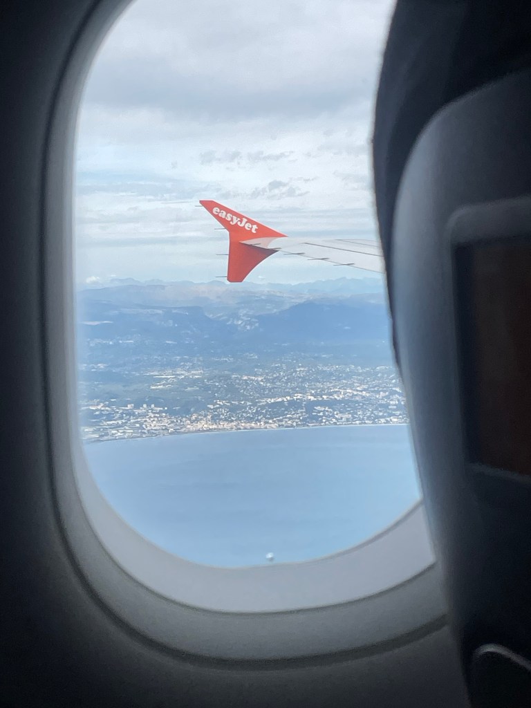 After a brisk walk to the train station in Orleans where we caught the tram to the bus stop, we took a Flix bus to the Orly Airport in Paris. The Flixbus was a double decker, and unfortunately our seats, which we had reserved, were on the top level, and I could definitely feel it sway back and forth. We traveled back through flat agricultural fields straight to the L’Aeroport d’Orly. This is very much the domestic and non-glitzy airport, in contrast to Charles de Gaulle. We had a long wait, but a short flight to Nice, where our niece, F, met us at the airport.