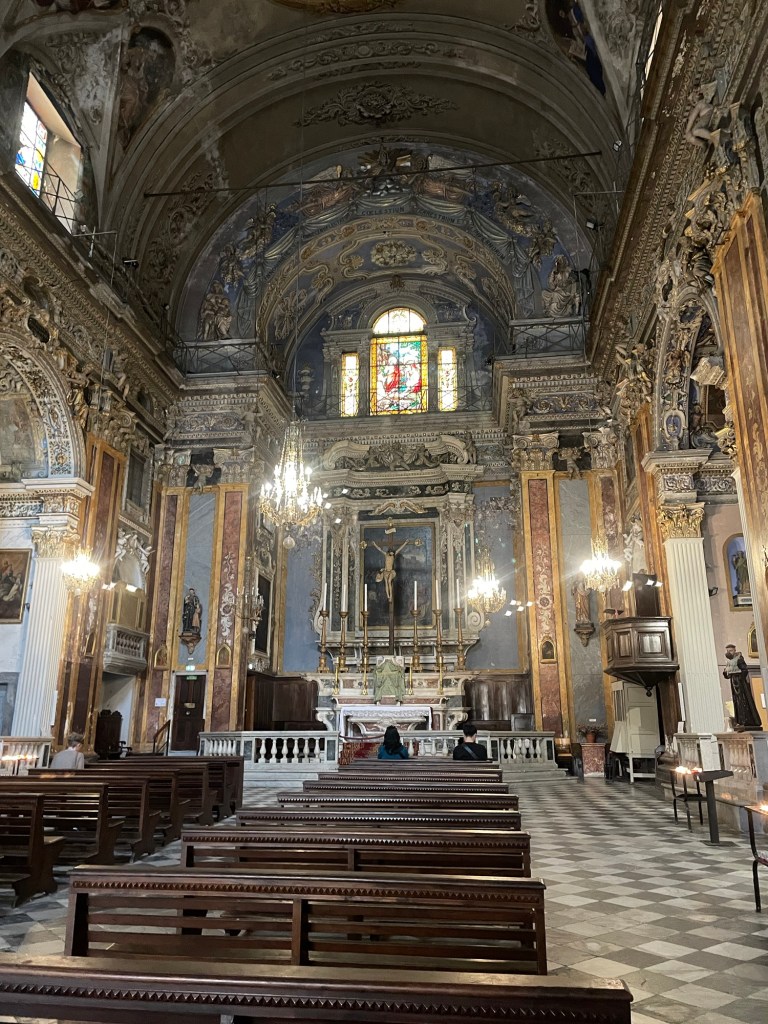 We slept late the next day and then drove into Nice. Despite the fact it was Monday, parking was very hard to come by but it did mean we got to see a lot of Nice in our quest for a place to park. We finally found a spot on a street where two gentil hommes sitting outside a bar helped F into a very tight parking place. Nice is filled with lots of old, orange apartment buildings (bourgeois buildings), and the promenade by the ocean sends one back decades in time. We visited a very old Baroque church (whose name I cannot locate anywhere), with lots of chapels dedicated to multiple saints, each of whom had a special prayer just for them. Lunch at an outdoor cafe, where I managed to make an international call and reach the vet to deal with the Kira and what to do with a dead cat issue. Yes, even on sabbatical these everyday issues do surface.