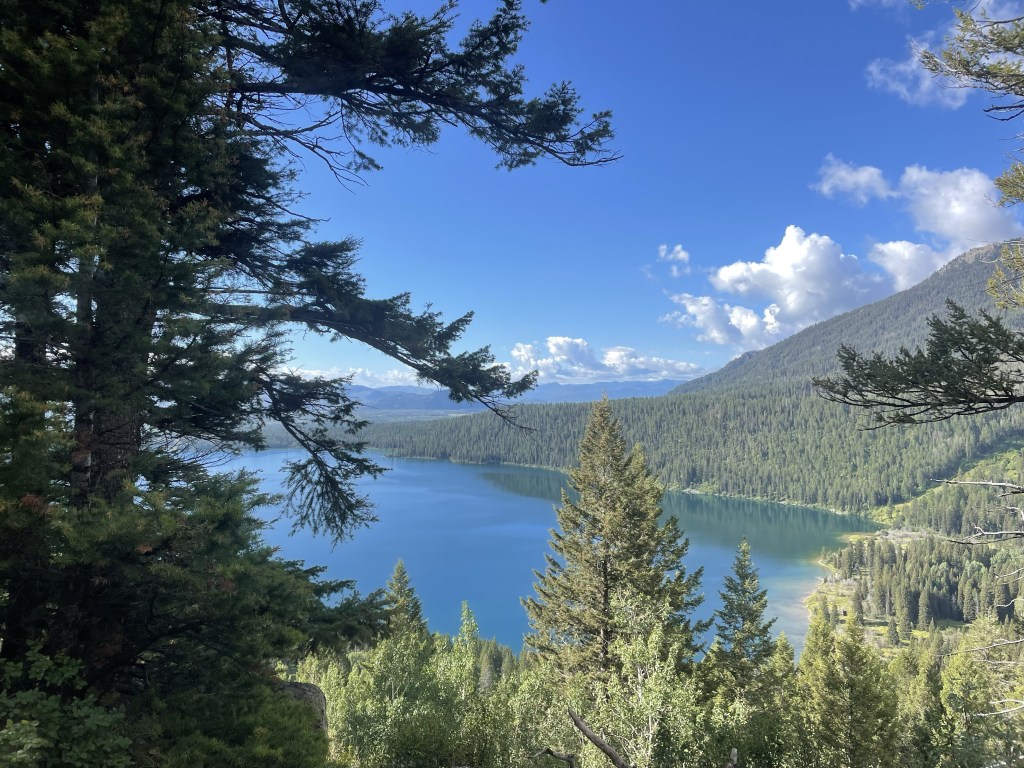 Next up was a drive around the beautiful Lake Jennie loop. It was rainy but that didn’t keep us from enjoying sandwiches and a beer at Dornans, a long time Jackson establishment. And saw another bear. Bears were sort of a theme in the Tetons.