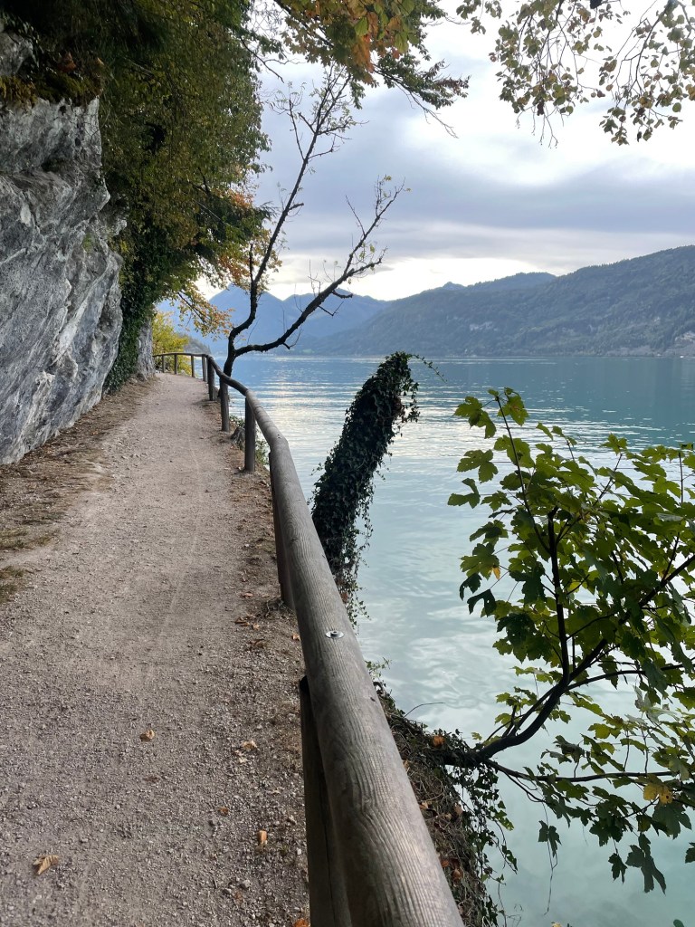 The hike from St. Gilgen to St. Wolfgang is an actually a pilgrimage route for St. Wolfgang himself. He lived as a hermit, later founding a monastery in St. Wolfgang. Lots of information boards along the way told his story, including in English at first…but then someone clearly became tired of translating and they were in German only.