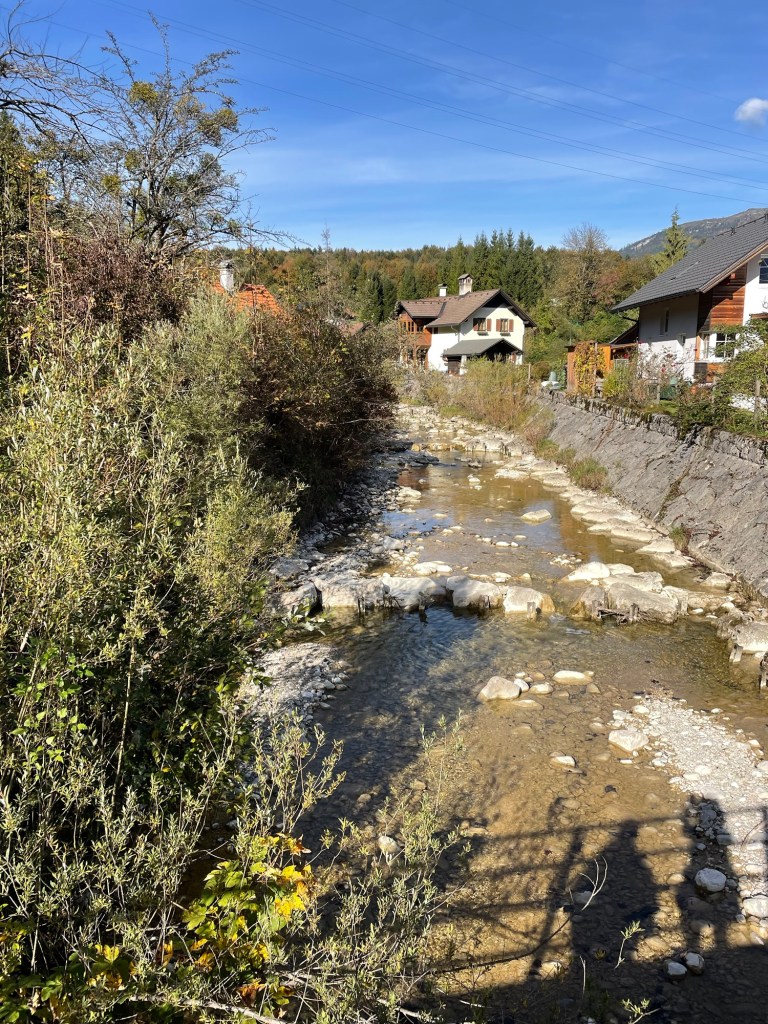 The 24/7 church bells clanging next to our hotel in Strobl didn’t keep us up quite as much on our last night there, so we were a bit better rested for our trek to our next stop, Bad Ischl. The weather was cool, and great for hiking. Our walk started off along the banks of the River Ischl – lots of flood control and hydropower. Some pretty woodland sections but not nearly as dramatic as the fairy dells we discovered the day before.