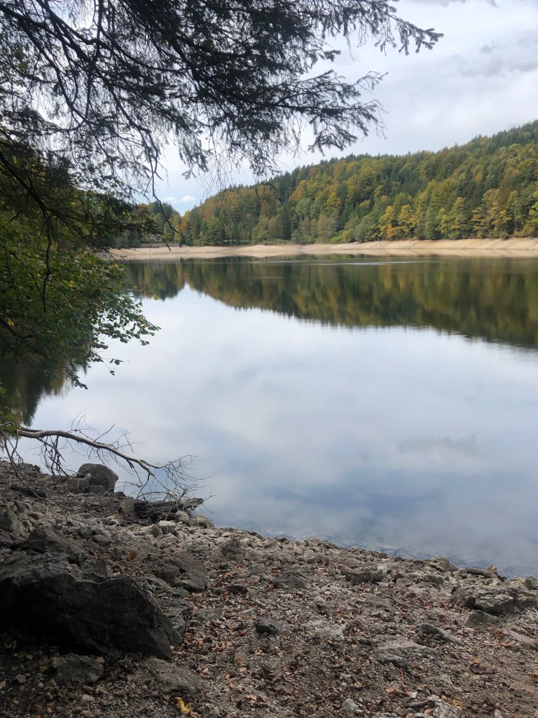 On the way, we walked through beautiful mossy areas that looked like fairy spots, biodiverse forests, followed by spread out tall pines with light dappling through. The lake seems small compared to the others, but it’s large enough when you walk around it.