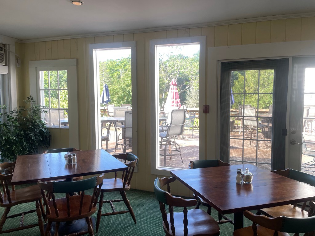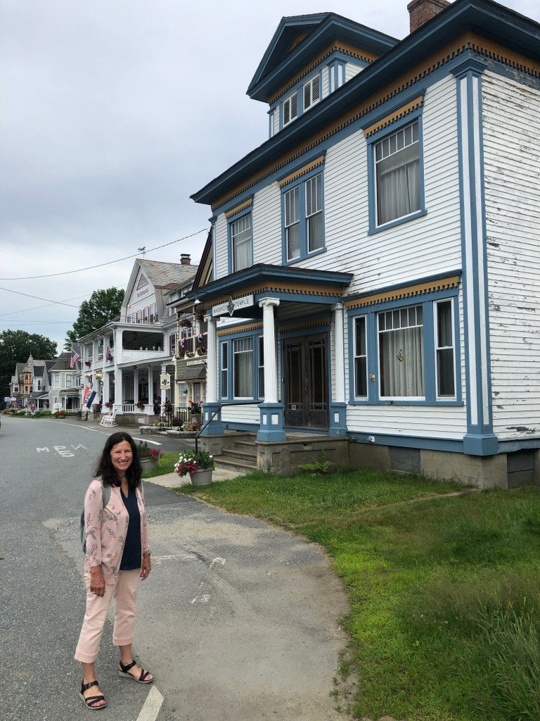 After a pleasant time imbibing their specialties, J and I felt fortified enough for dinner. It turned out to be served only on the inn’s front porch – the dining room having been closed since Covid – and our elderly waitress appeared to be the only server. While the menu looked rather comprehensive, she first announced a list of things they did not have, which reduced the menu to a series of about five choices. I picked the vegetarian entree, the central feature of which was to be various grains. When it arrived – about an hour and a half later – there were no grains to be had. And, even though we were in Vermont, they were out of maple syrup. So much for the majority of desserts. On the flip side – there was a really good pie, the contents of which I no longer remember.