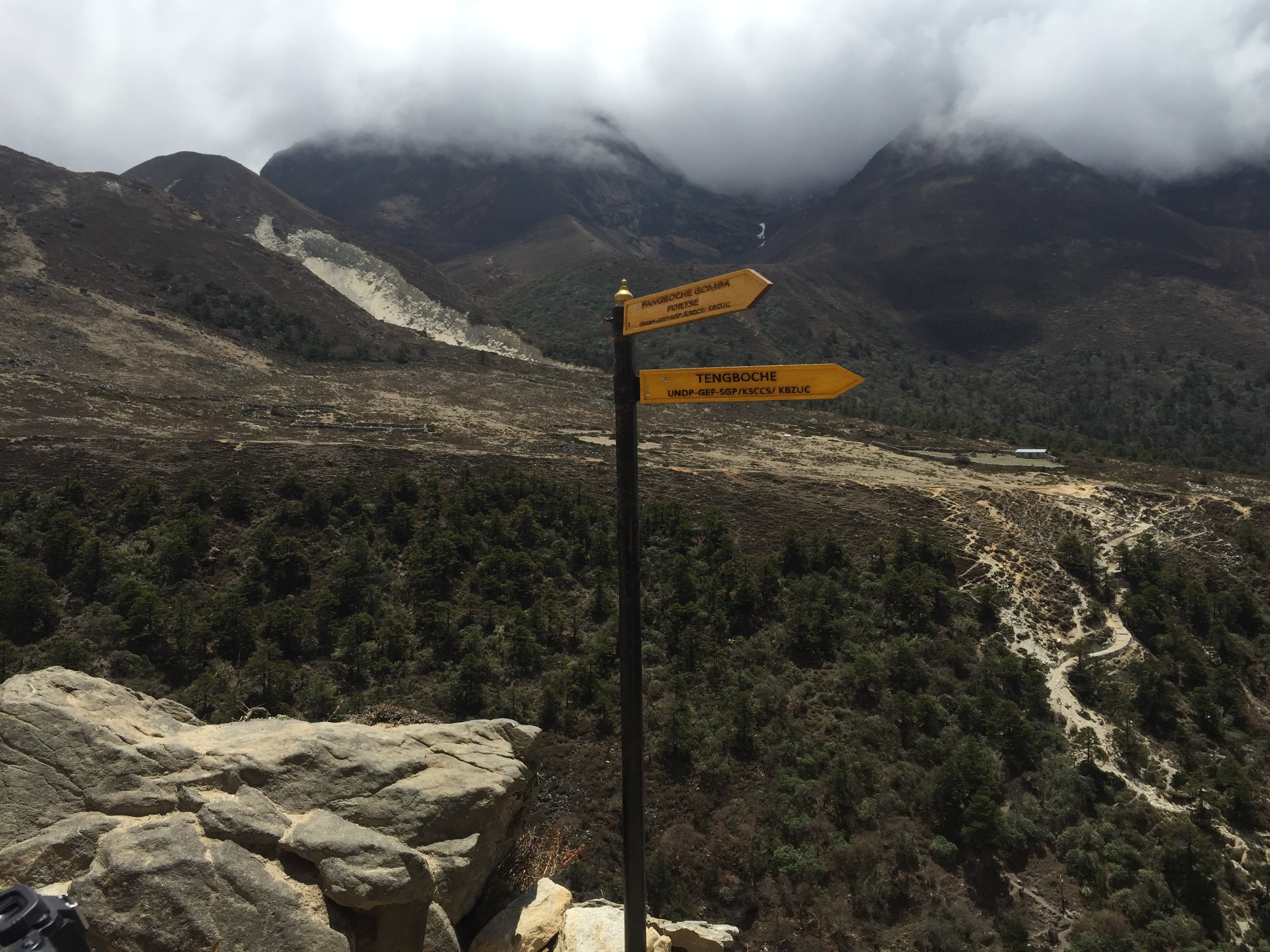 After three hours we reached Phak Ding and our first experience of tea house culture. The tea houses changed as we worked our way up to EBC and away from village into trekker culture. More on that later. But typically there’s a dining room that serves as a communal living area, common toilets (although our first two tea houses had “en suite” toilets – little did we know what a luxury that was!), and very cold small plywood pine rooms with twin beds, sheet and blanket, and if you were lucky, hooks and a light that would work after 6 pm. Ultimately we realized we needed to regard the rooms as a sophisticated version of a tent.