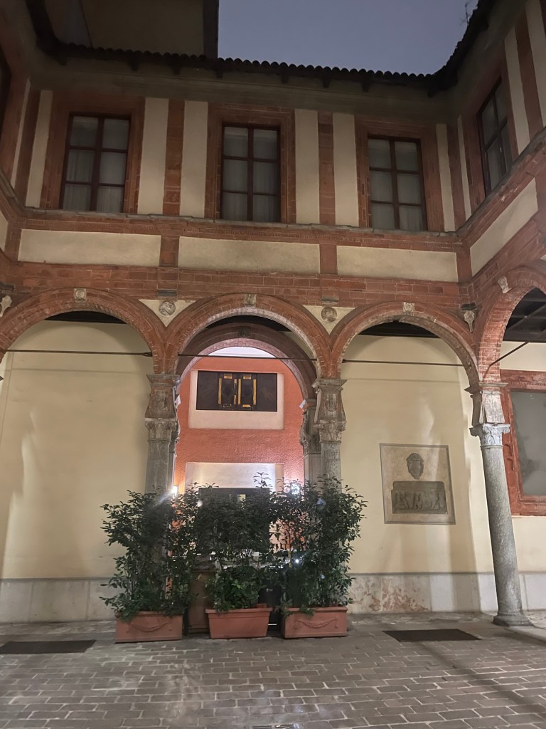 We managed to make our way to the corner of the street where our Airbnb was located – there we met up with possibly the most unusual Airbnb proprietor and Airbnb of any of our European travels. Let’s just say a five star rating was paramount for him. The location was unbelievable. We were just off one of the main streets and very close to the Duomo. You enter through a huge gate/door which leads to a quite beautiful courtyard. Parts of the building are allegedly built in the 15th century by Donato Bramante (and I have no reason to doubt that) but certainly there are lots of additions. The building itself is a mix of apartments and commercial ventures, including goldsmiths, one of which was located right by our studio apartment. You could hear human noise from the other apartments but absolutely no sounds from the street.