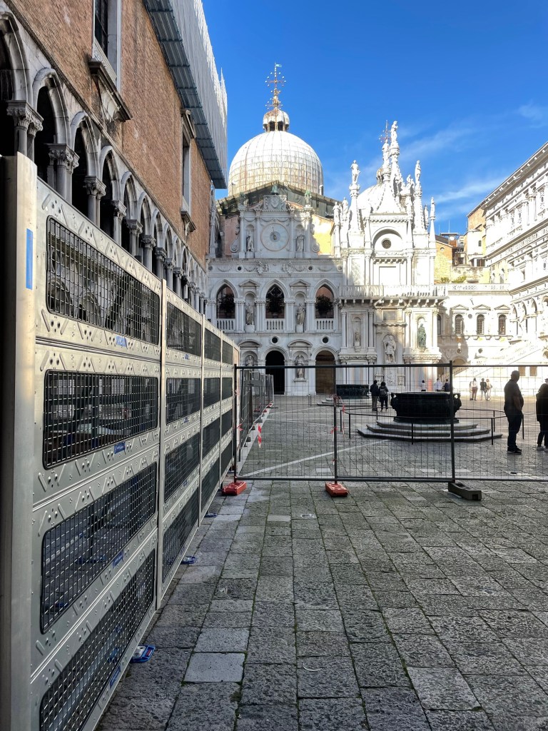 After lunch we visited Doge’s Palace, whose dark, somber, huge rooms stood in stark contrast to the sparkle of the French and Austrians. When Venice was its own kingdom the doges were its rulers, with the role ultimately to become only ceremonial and then expire altogether after Napoleon’s conquest of the city. I now know a lot about the Battle of Lepanto (a 1571 naval defeat of a fleet of the Ottoman Empire), and the sheer volume of Veronese and Tintoretto paintings on walls and ceilings was almost overwhelming. We concluded with a tour of the prison cells and the Bridge of Sighs, where prisoners had their last glimpse of freedom before being confined in their cells.