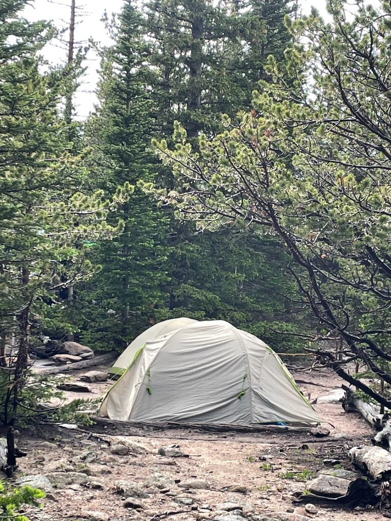 We reached the Boulder Brooks campsite in decent time. It’s situated by a rushing stream and consists of three very spread apart sites. Of course, as soon as we got the tents up it started to pour with a hard rain, which seemed to be the pattern of this trip. J and I hunkered down in the tent and I finished my book. My kindle is truly worth the extra few ounces on trips like these.