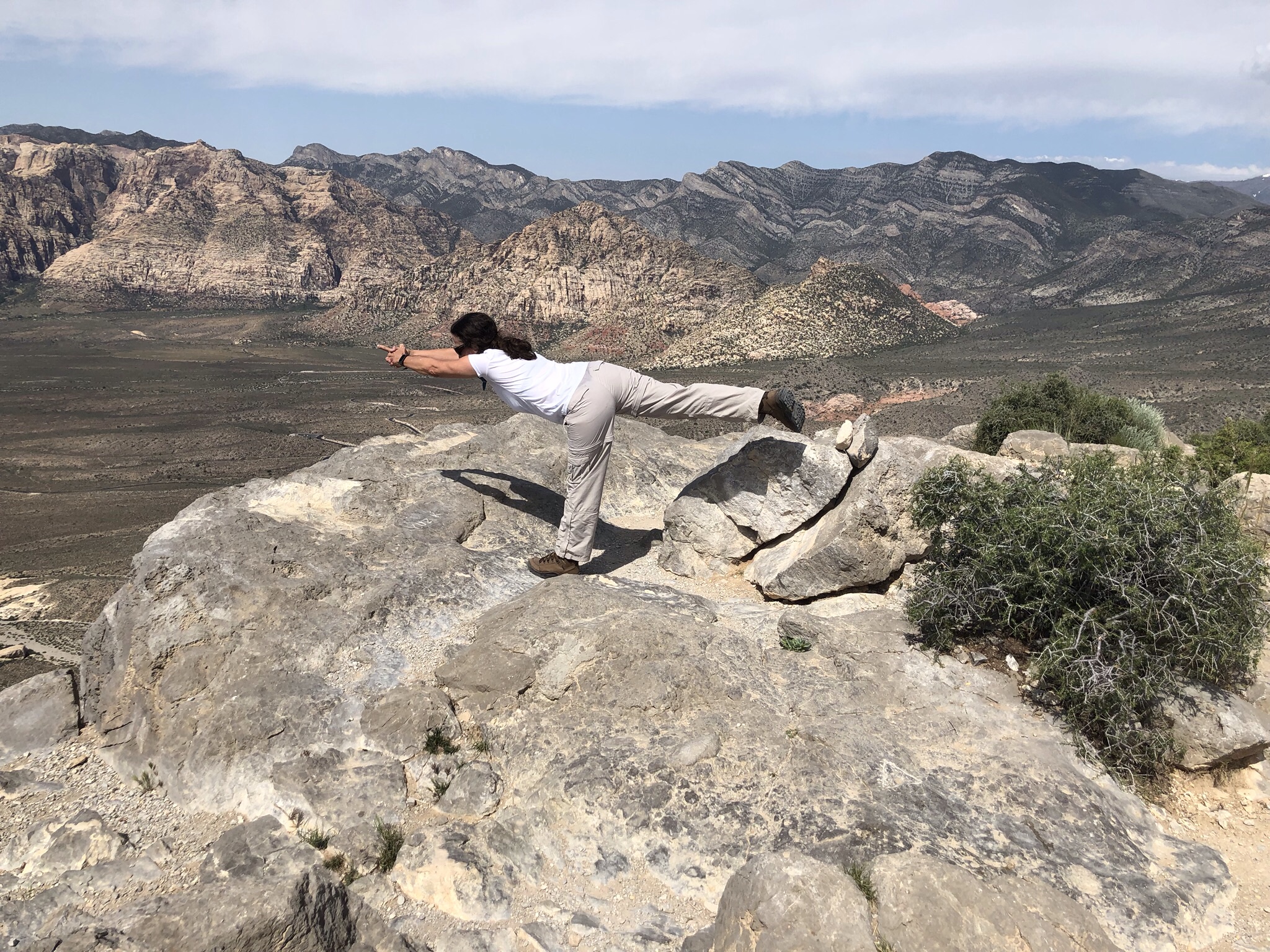 After a quick lunch in the air conditioned Explorer, we journeyed on to the Saddle Pass. It was a true scramble – steep and slippery up the rock formations themselves, culminating on the flat upper green prairie and a number of trailheads. At the ranger’s suggestion, we then went off track and climbed the highest peak to a little throne at the very top. Amazing how touching the rock – as opposed to being on a ladder = makes it so much easier!