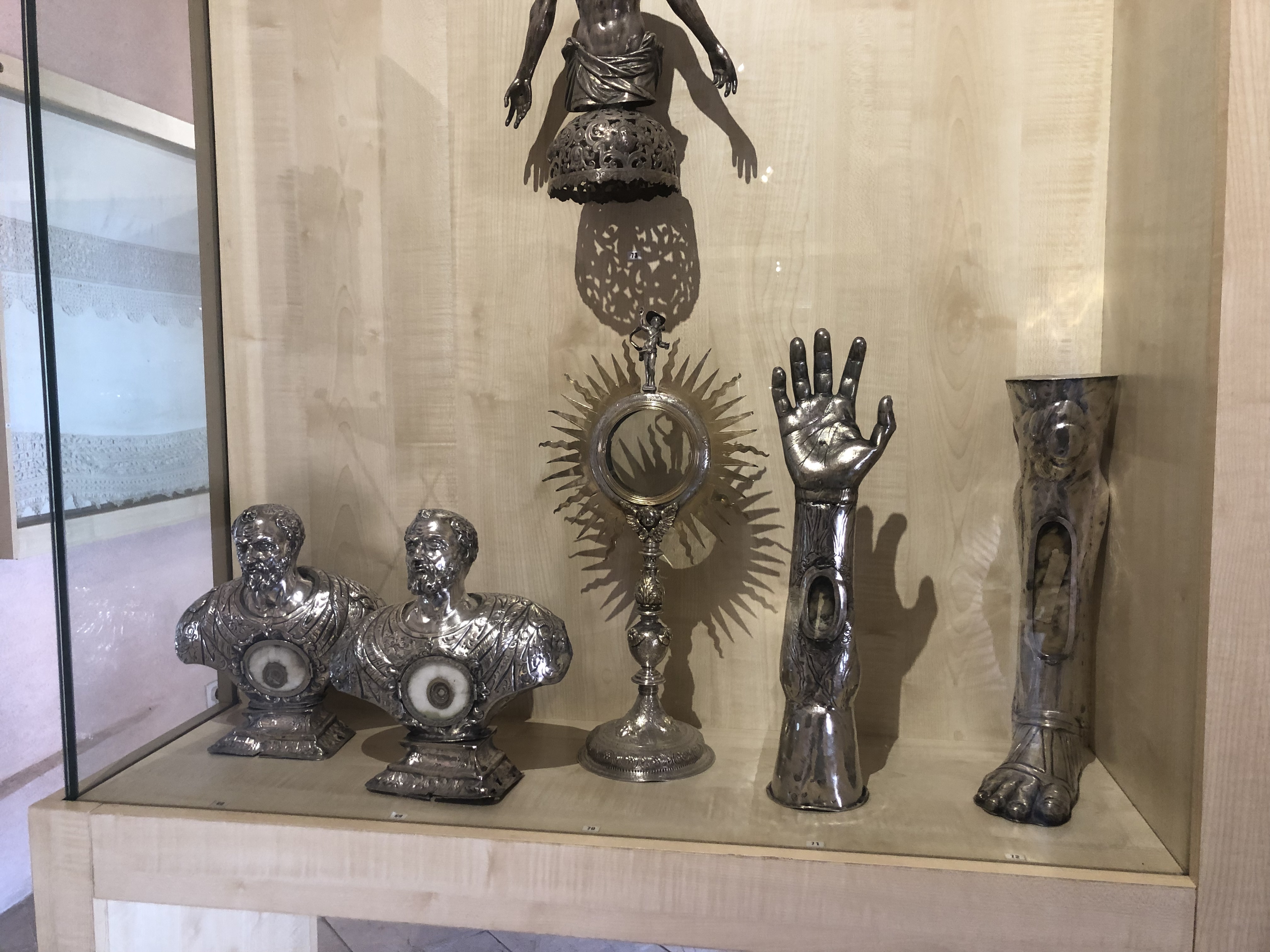 Once settled into the hotel we all walked down to the beach and found a restaurant with the unlikely name of Jet Ski for lunch. After yet another Greek salad, we walked into Old Town and visited several churches, both Catholic and Orthodox. Lots of relics (think silver gloves with a small aperture through which there is theoretically a nail clipping of a saint). Turned out to be a good place for souvenirs as well – particularly intricately embroidered linens.